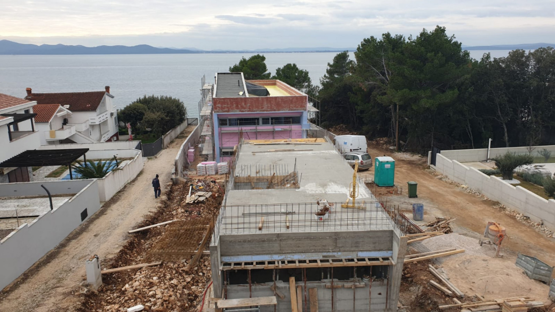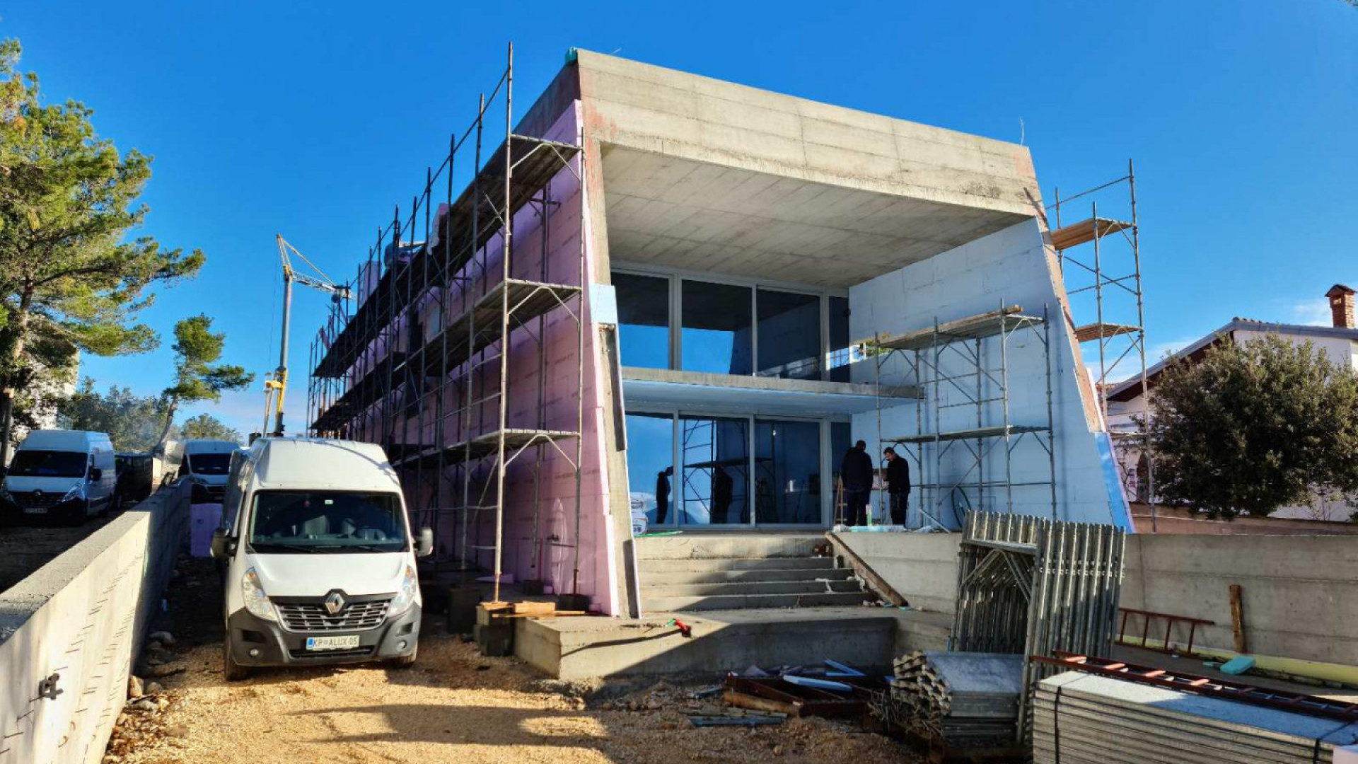 Projekt 3 moderních vil, navržený panem architektem Zdeňkem Fránkem, architektem roku 2020, je důkazem toho, že v Chorvatsku celý proces výstavby trvá mnohem kratší dobu než v České republice. V září investor koupil pozemek, na jaře následujícího roku začala výstavba projektu a další rok bude stavbu kolaudovat. To vše i s několika měsíční odstávkou, kdy je v Chorvatsku zakázáno provádět stavební práce.